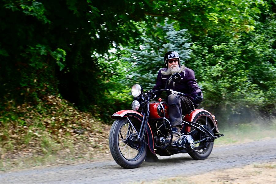 Oregon Trail Chapter Vice Pres. Tim riding his 1935 VLD on our 2025 AMCA National Road Run. -Pod Photo-